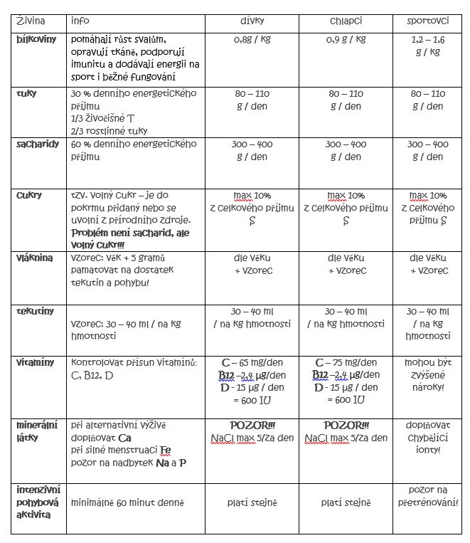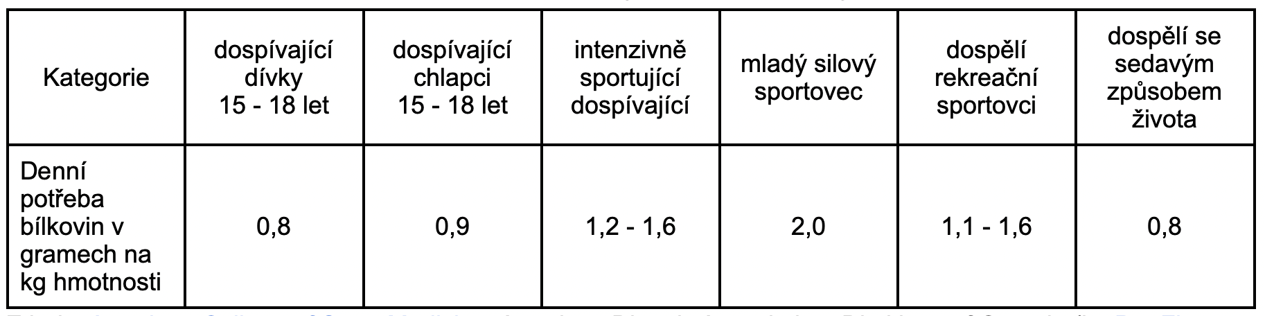 Průměrná potřeba bíkovin u teenegerů: